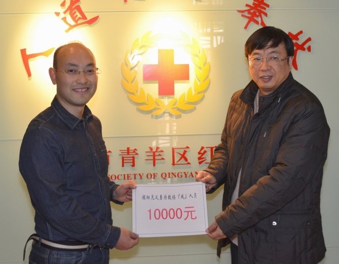 同日下午,健康作家西江将获得的4000元奖金全部捐给成都市青羊区红十字会,同时他还捐出图书版税6000元,合计捐款10000元,用于救助见义勇为致伤(残)人员。青羊区红十字会会长涂德刚接受了该项捐助。